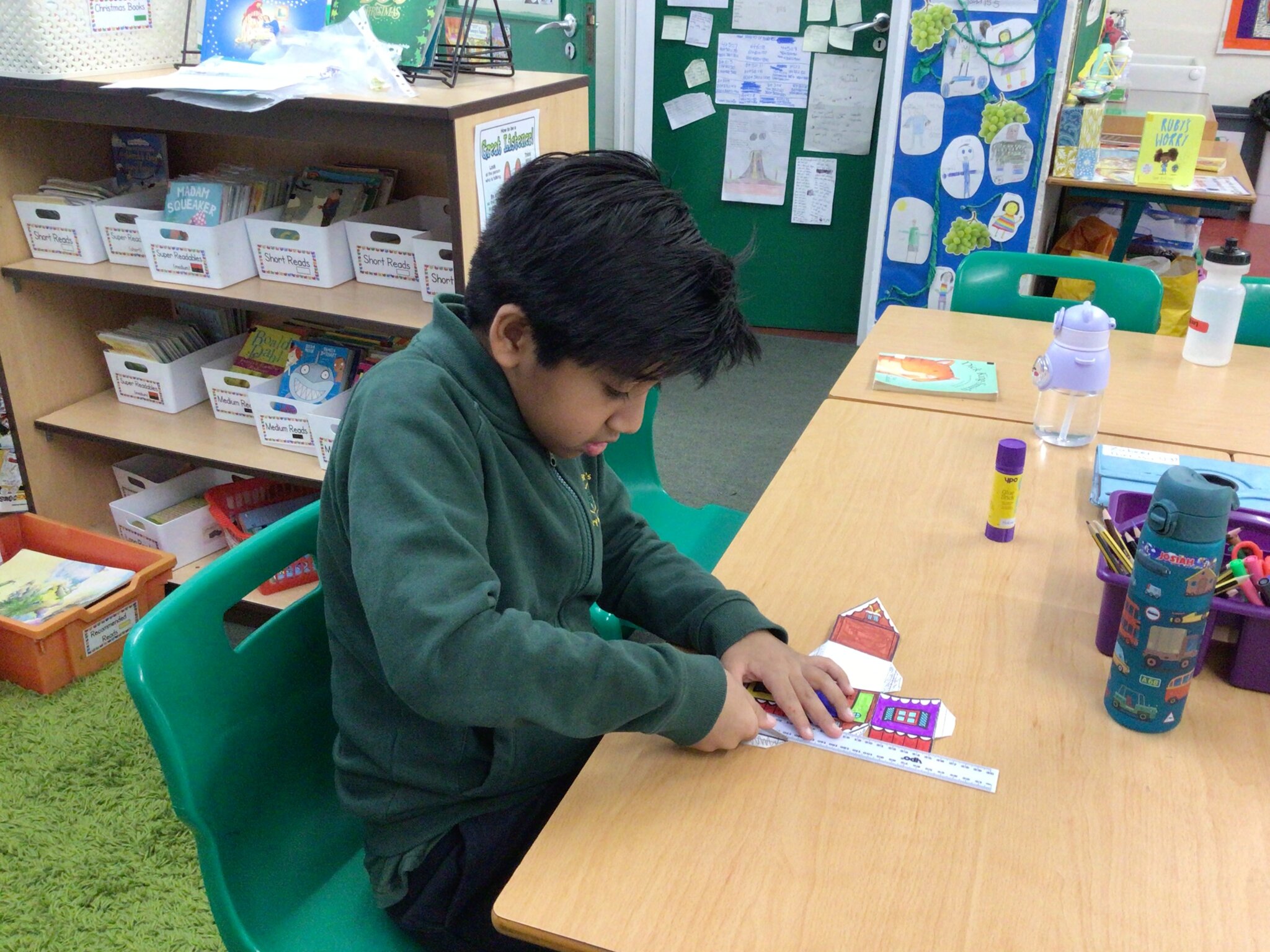 We are continuing our DT topic of packaging and today we practised the skills of careful cutting and folding. We learnt to use scissors to score the card so that we could get a really good fold. We made 3D Christmas houses to help decorate our class Christmas tree!