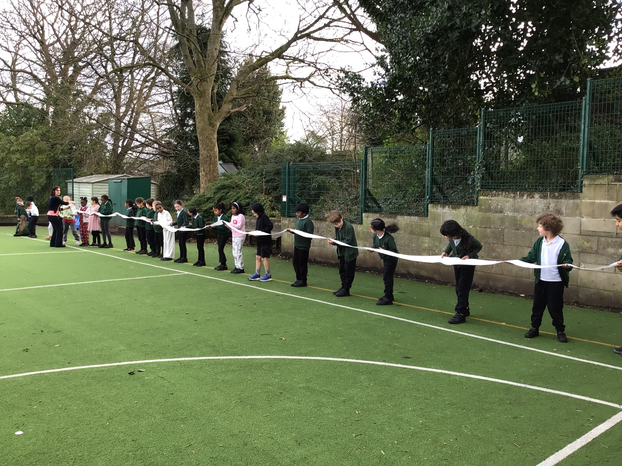 Today we started our new topic which is the Stone Age to Iron Age in Britain. We created a timeline out of a toilet roll to show how incredibly long the period of prehistory (before written records) lasted. The Palaeolithic Stone Age period was by far the longest period we looked at. If each sheet of toilet paper represented 5,000 years, we had to use the whole roll to get back to the beginning of it… we were amazed!