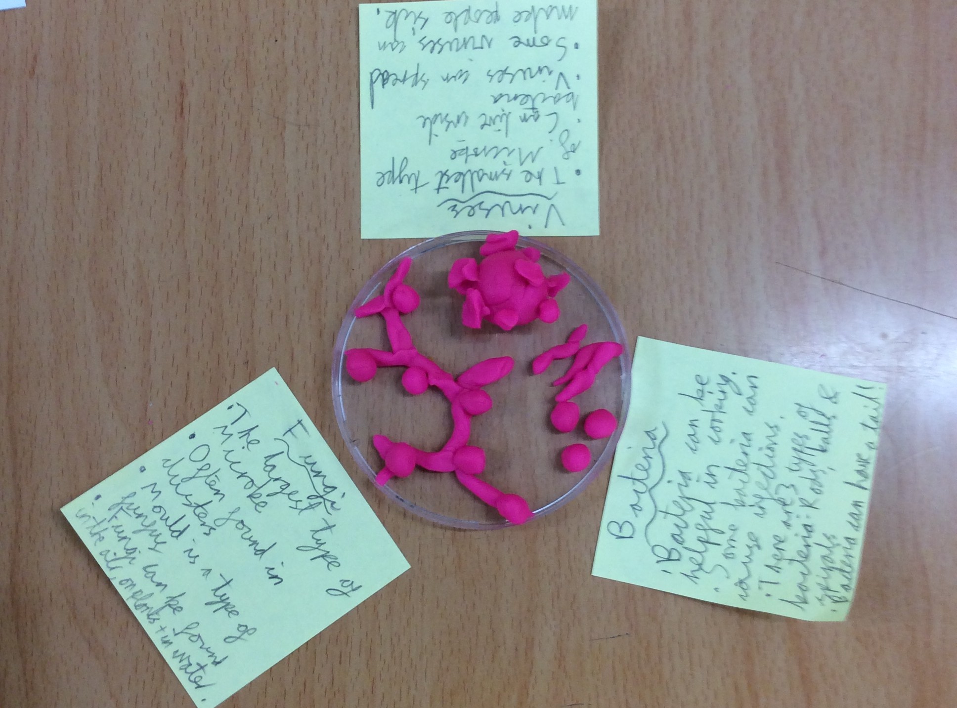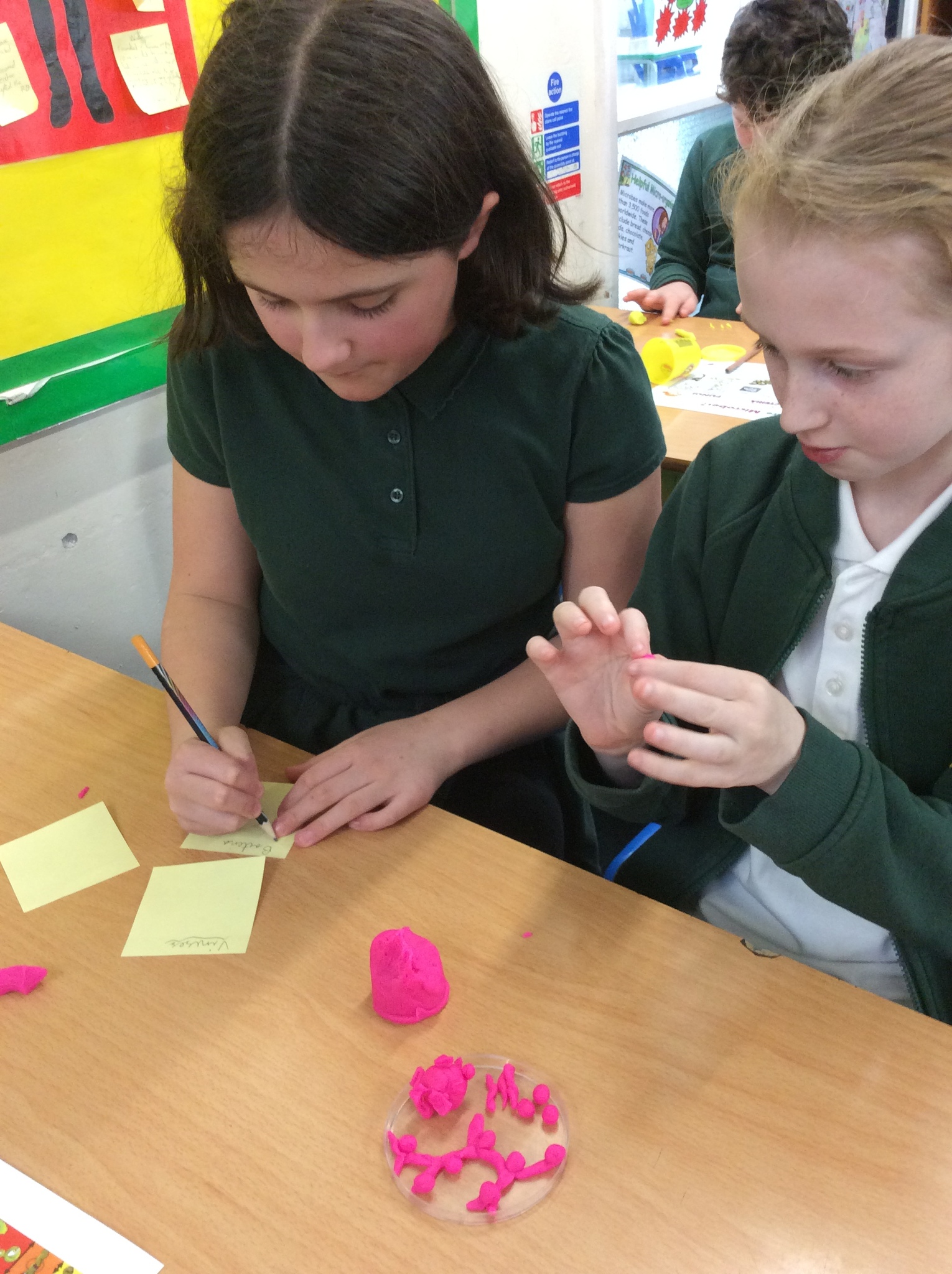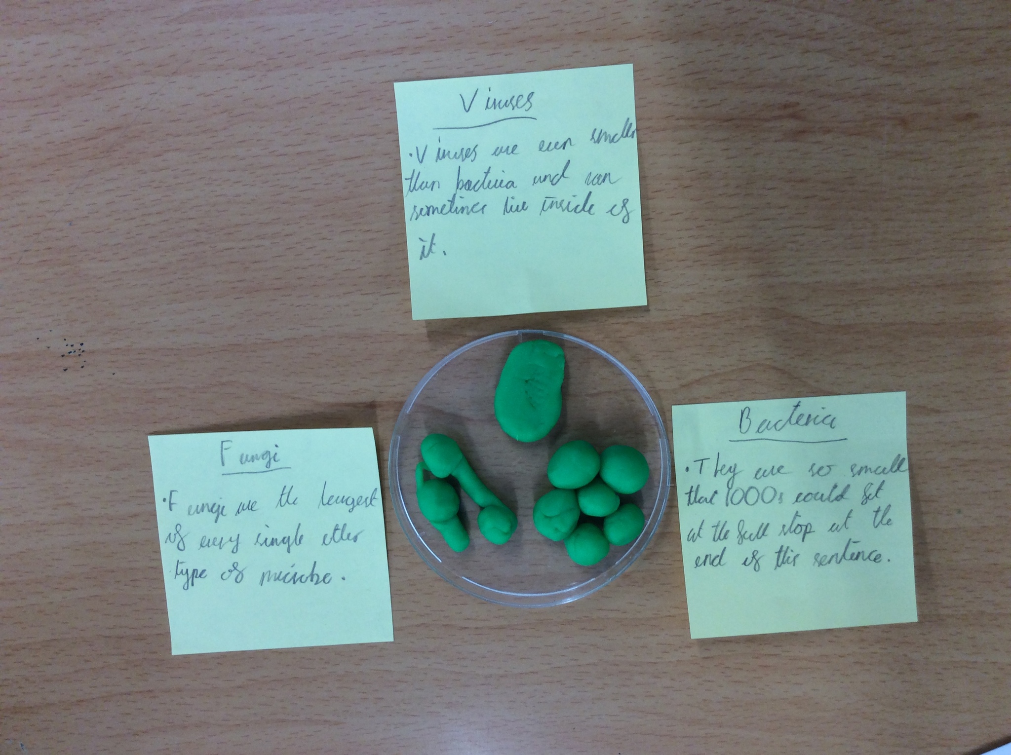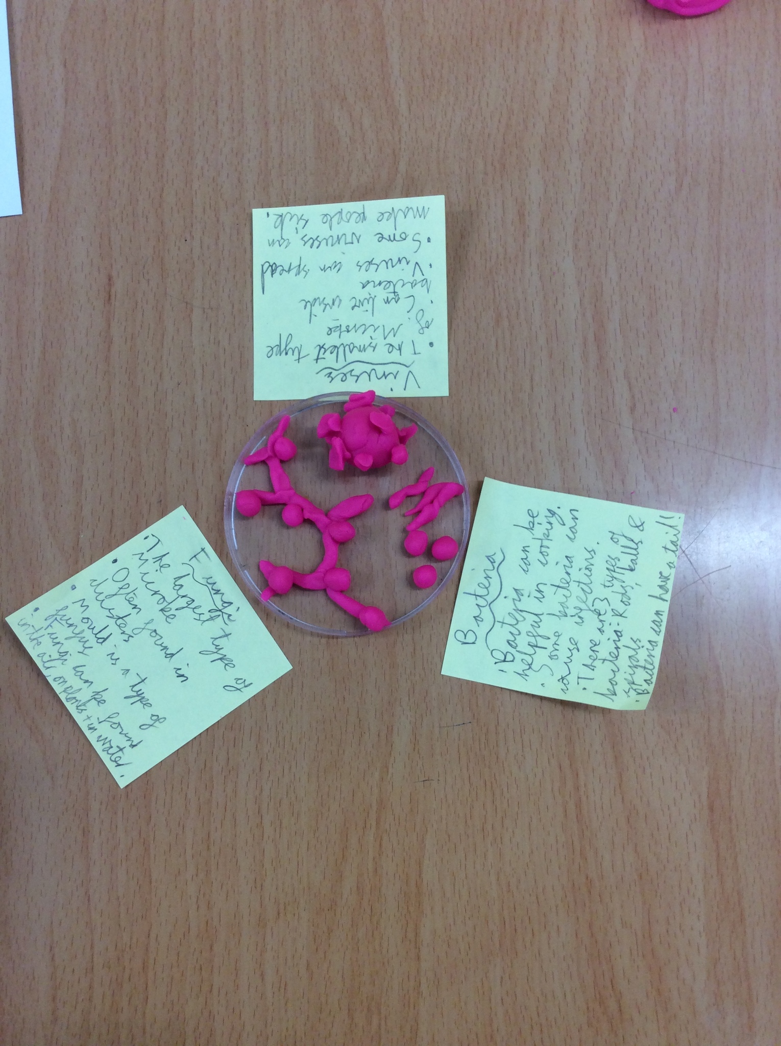 We looked at some amazing photographs of microbes magnified under a powerful microscope and then had some fun making our own using Playdough to reinforce what we had found out.