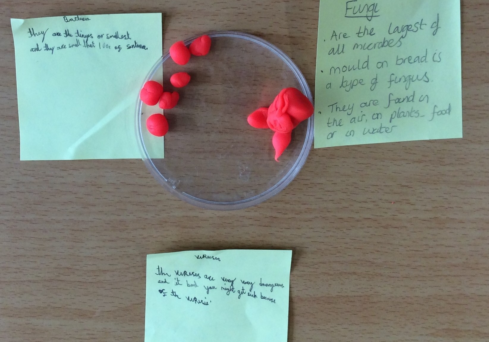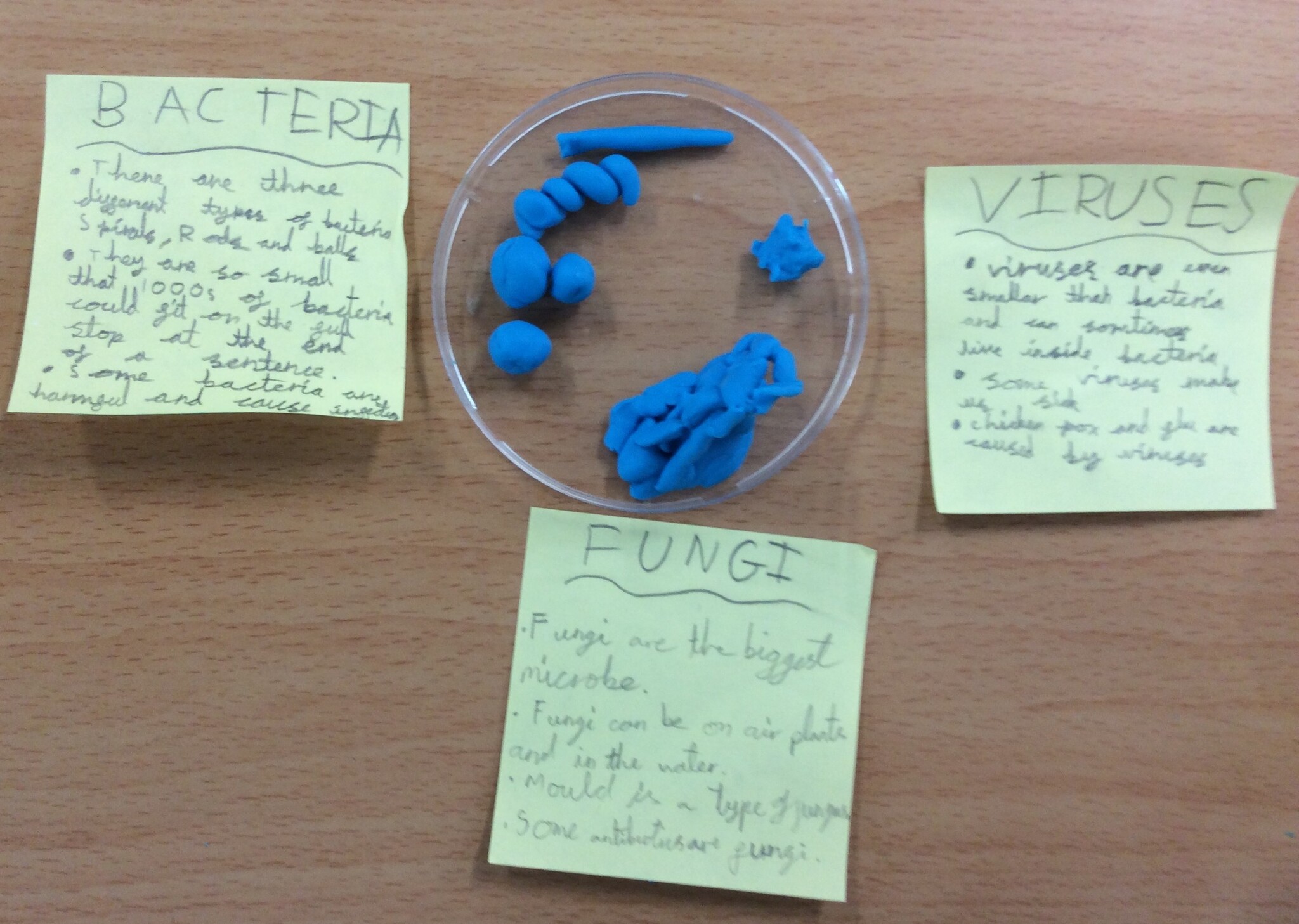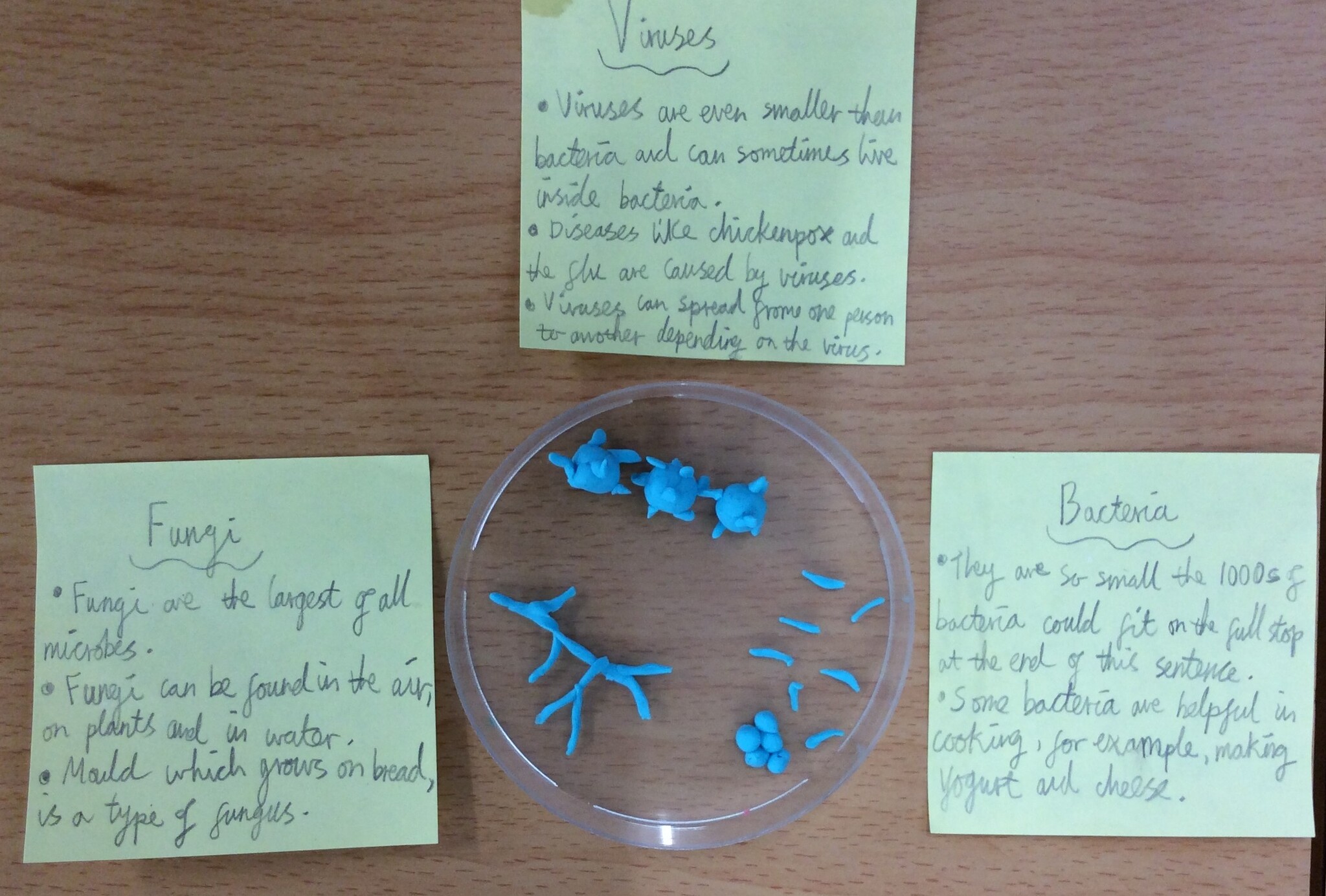 We looked at some amazing photographs of microbes magnified under a powerful microscope and then had some fun making our own using Playdough to reinforce what we had found out.