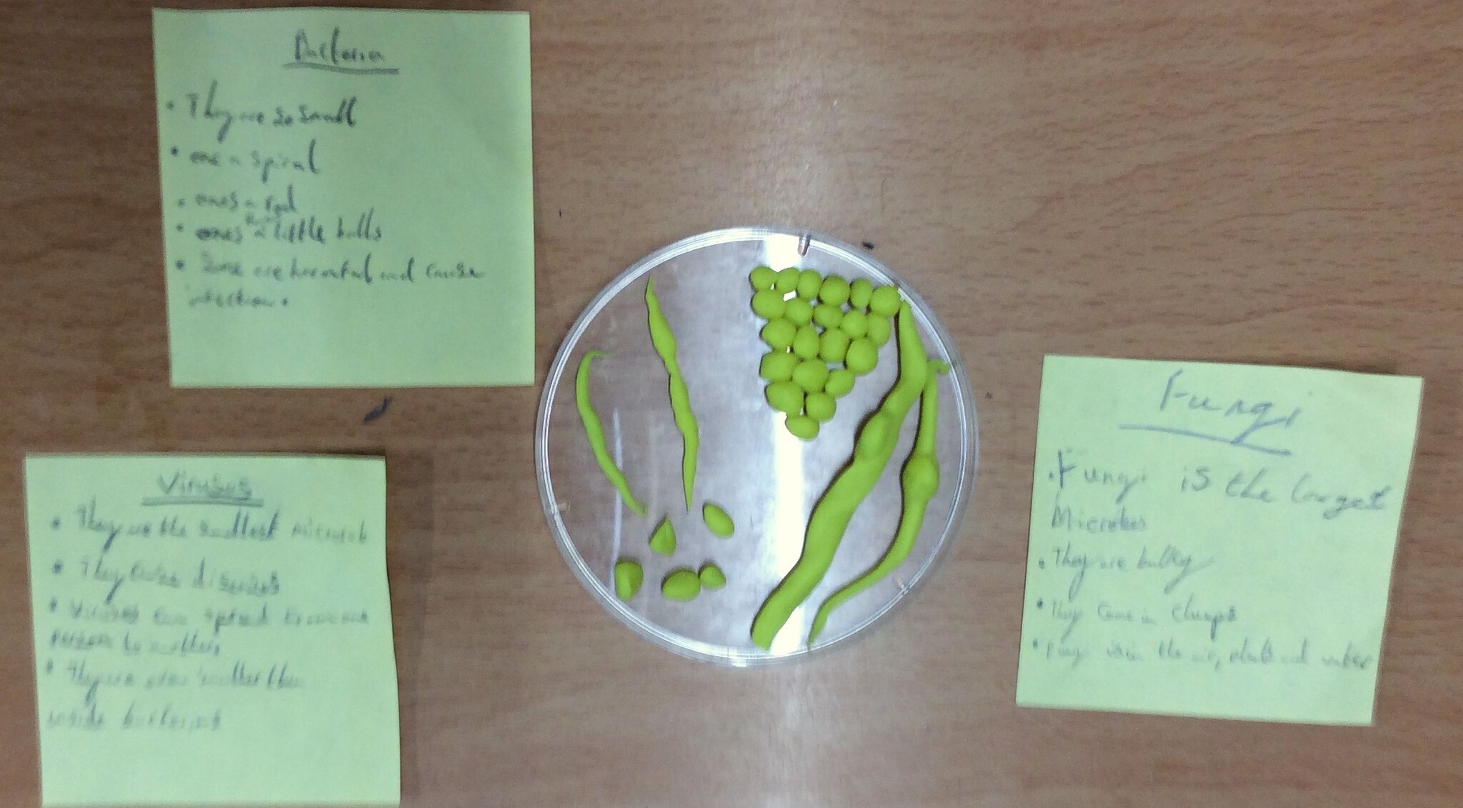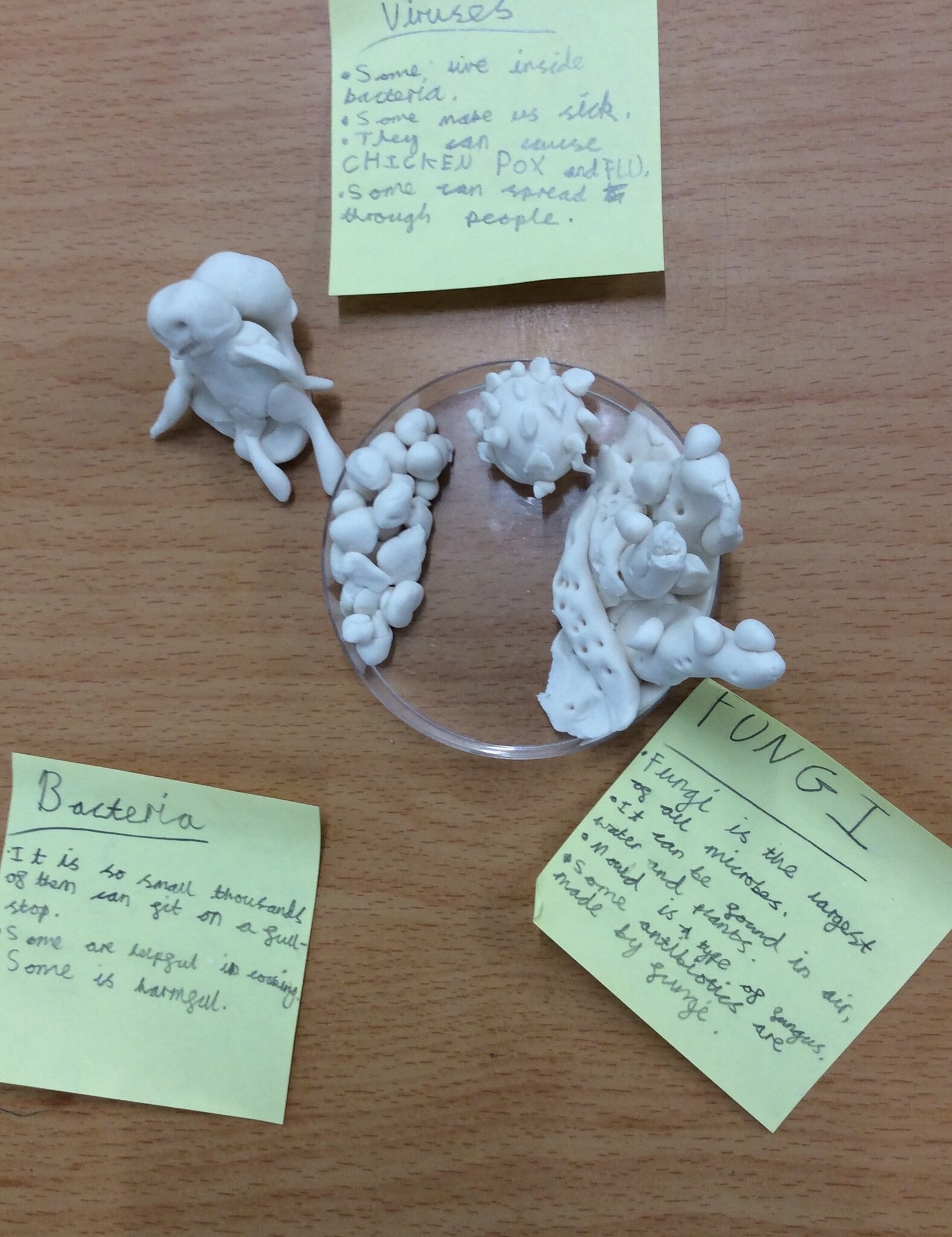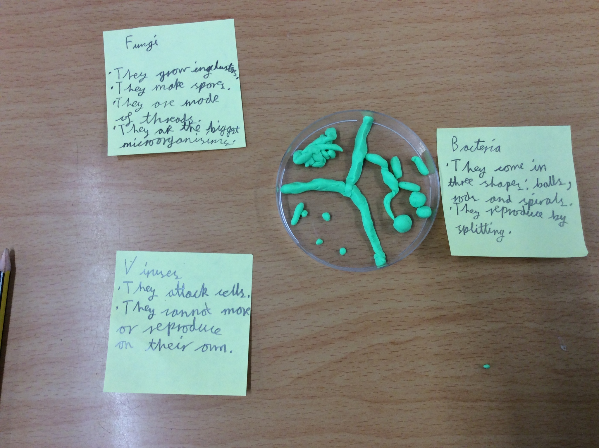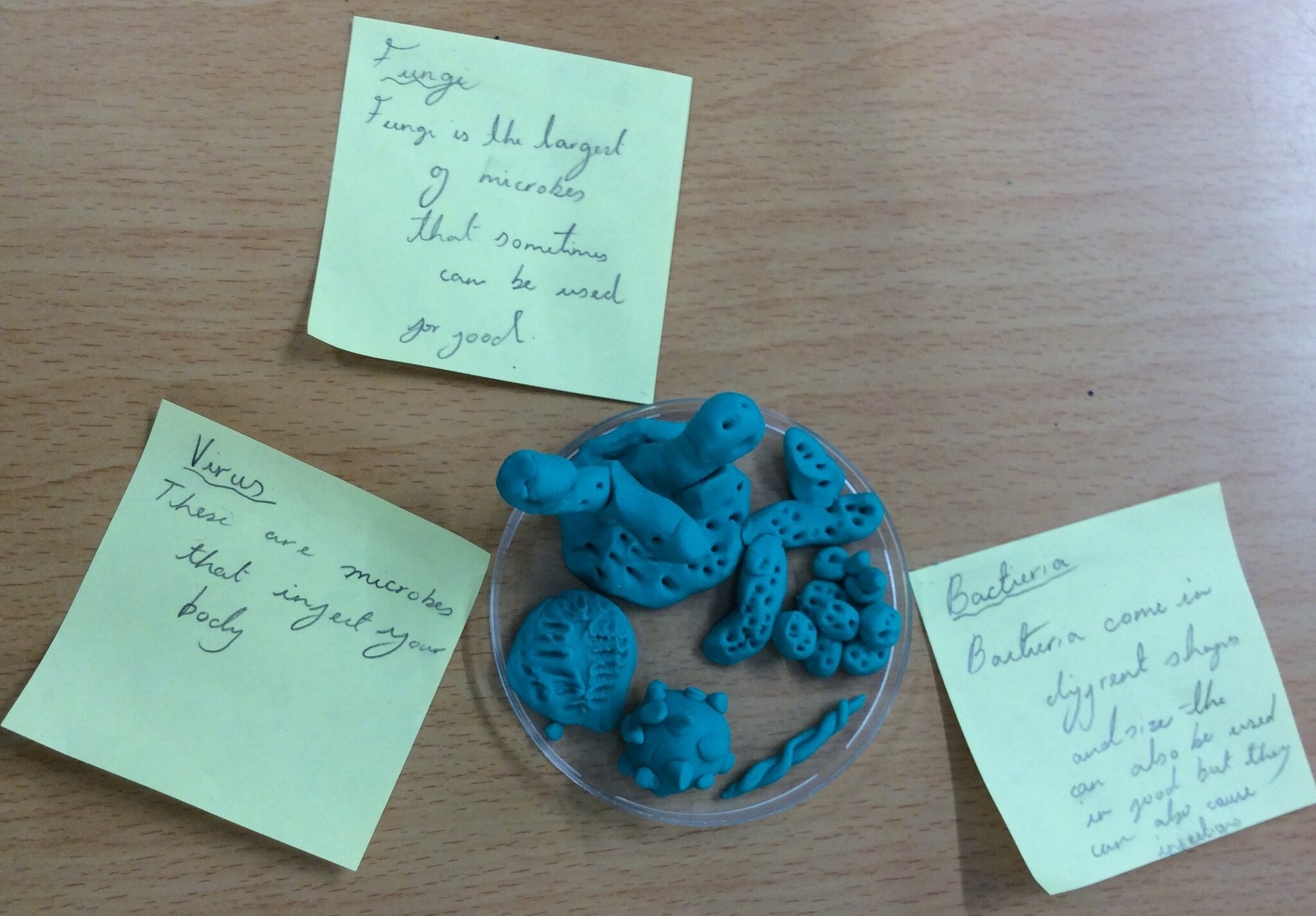 We looked at some amazing photographs of microbes magnified under a powerful microscope and then had some fun making our own using Playdough to reinforce what we had found out.