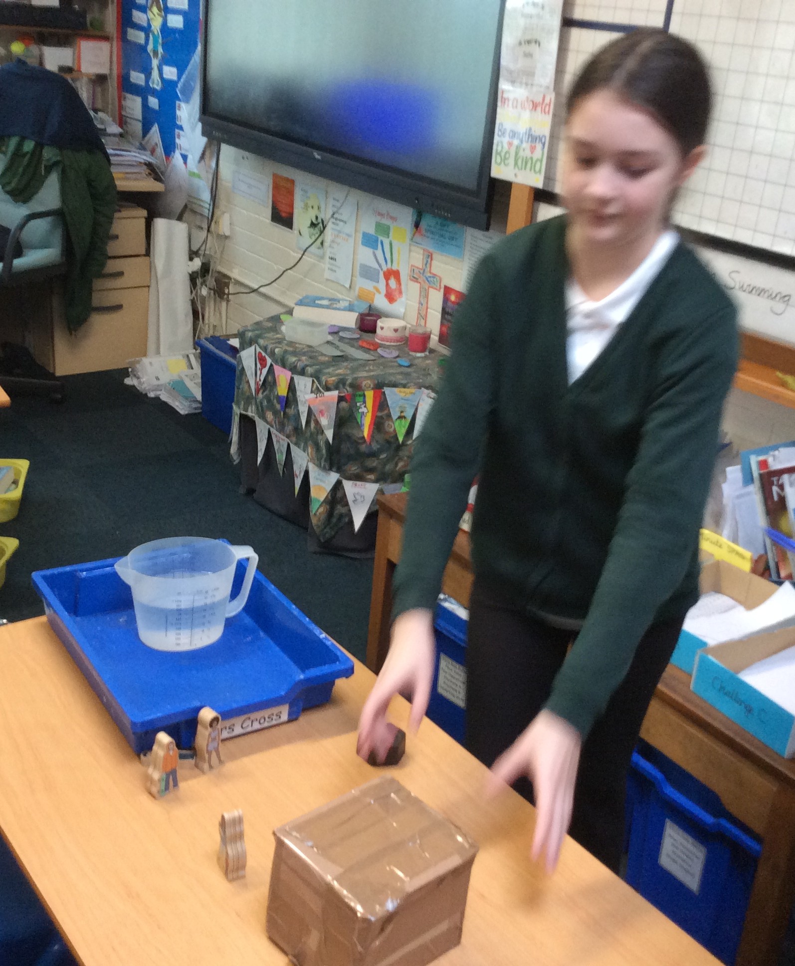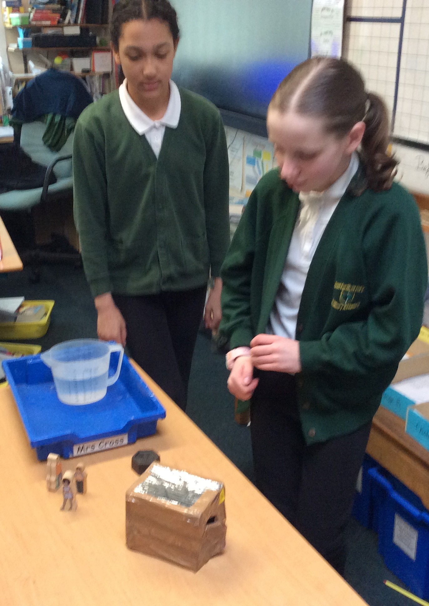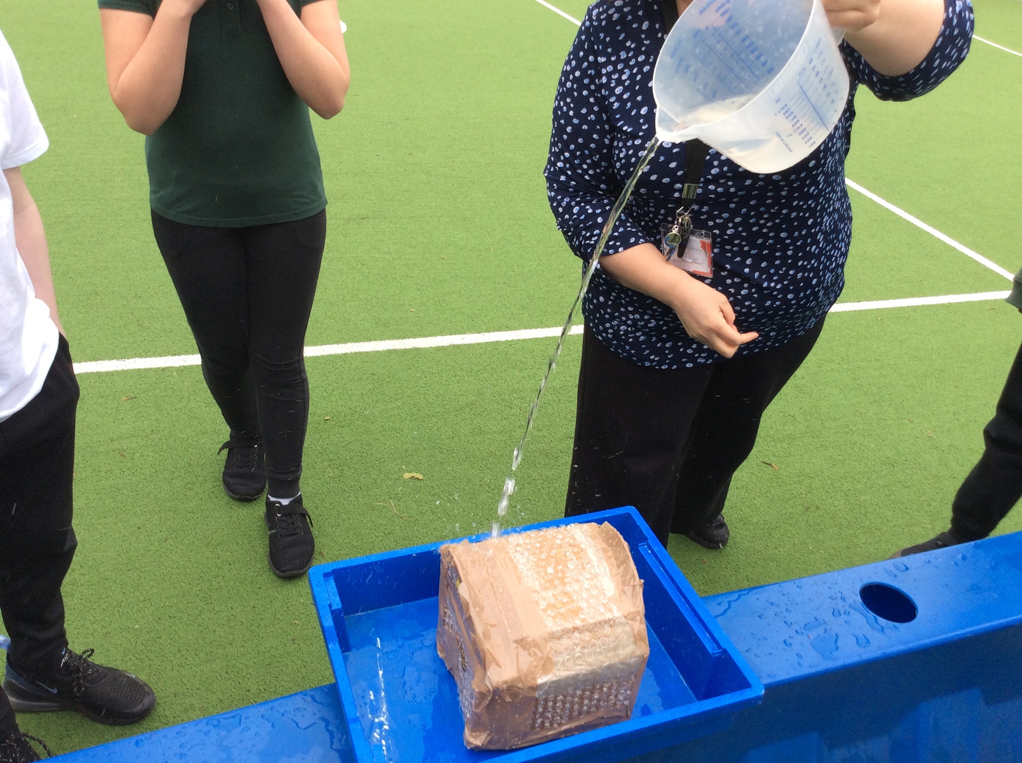 We have been working hard in Y6 to get our shelters finished before half term. We then tested that our finished constructions were waterproof, windproof, strong and could allow our family of 4 people to stand and lie down inside. We gained marks out of ten for each test to reveal an overall winner. It was a close contest and not all of the shelters stood up to the testing!