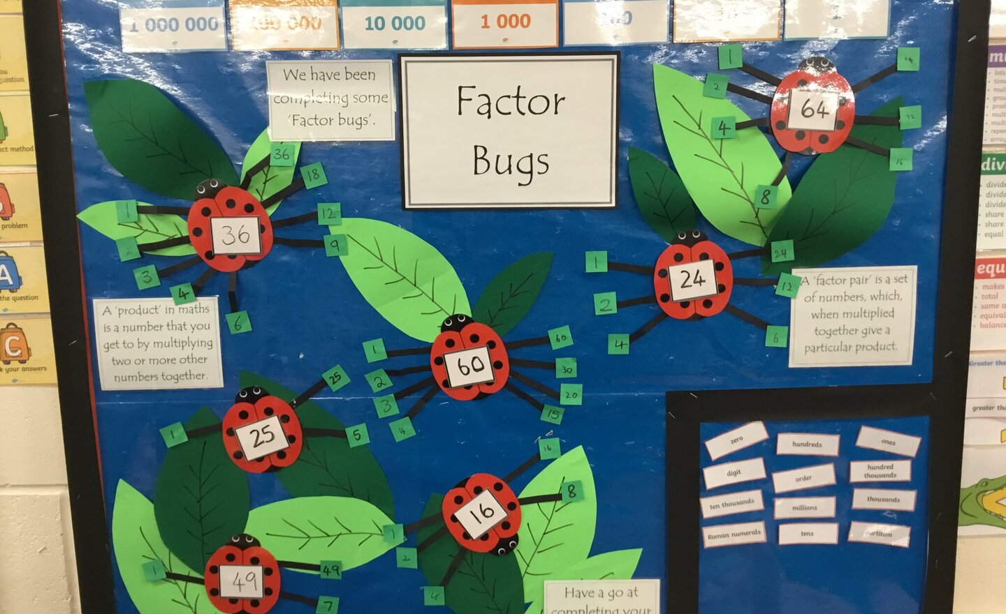 We have been practising our times tables and learning about factors. We have created a display to help us remember what a factor is.
