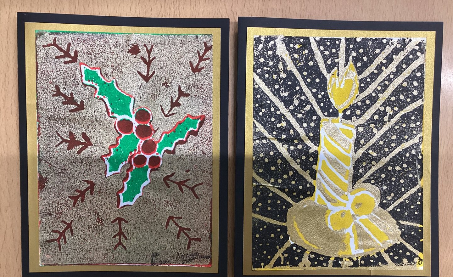 After several weeks of work, Year 6 have finally finished their multi-layer printing project, just in time to turn them into their Christmas cards.